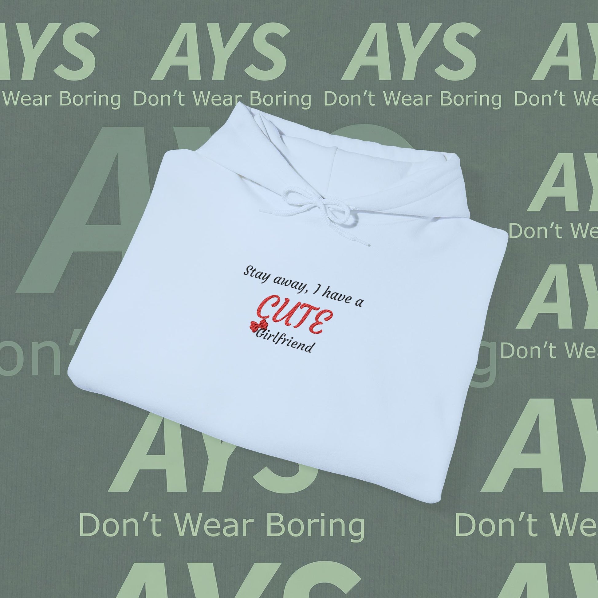 Embroidered Heavy Blend™ Stay Away, I Have a Cute Girlfriend" Hoodie